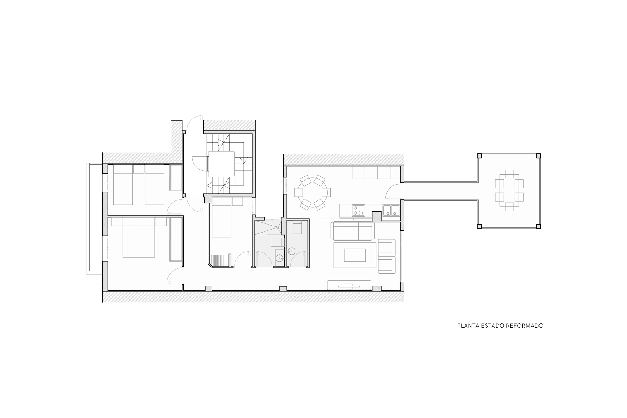 En la transitada calle de Colón, a espaldas de la bulliciosa ciudad, este apartamento de 3 habitaciones con terraza exterior se remodela a gusto de los propietarios. Mediante un replanteo de las conexiones la cocina con las estancias principales y la optimización de la terraza surge una propuesta adaptada a la nueva familia y a sus exigencias de confort y flexibilidad.