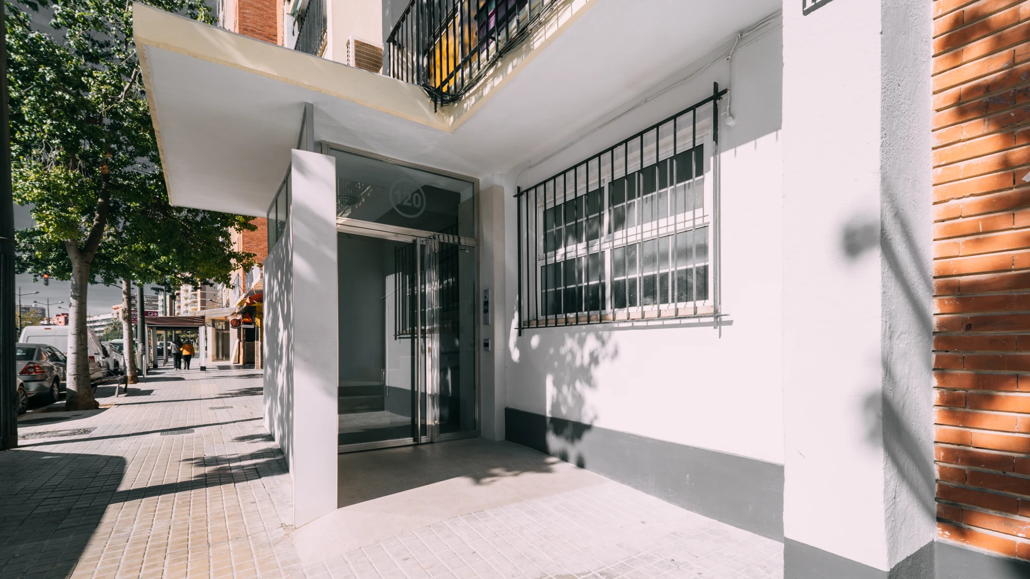 Los vecinos de Avenida del Cid 120 lograron conseguir con estas ayudas una reforma que comprendió la accesibilidad completa del zaguán, la reforma de su ascensor y la pintura de las diferentes zonas comunes, dando un aspecto renovado y elegante a su antiguo acceso al edificio.