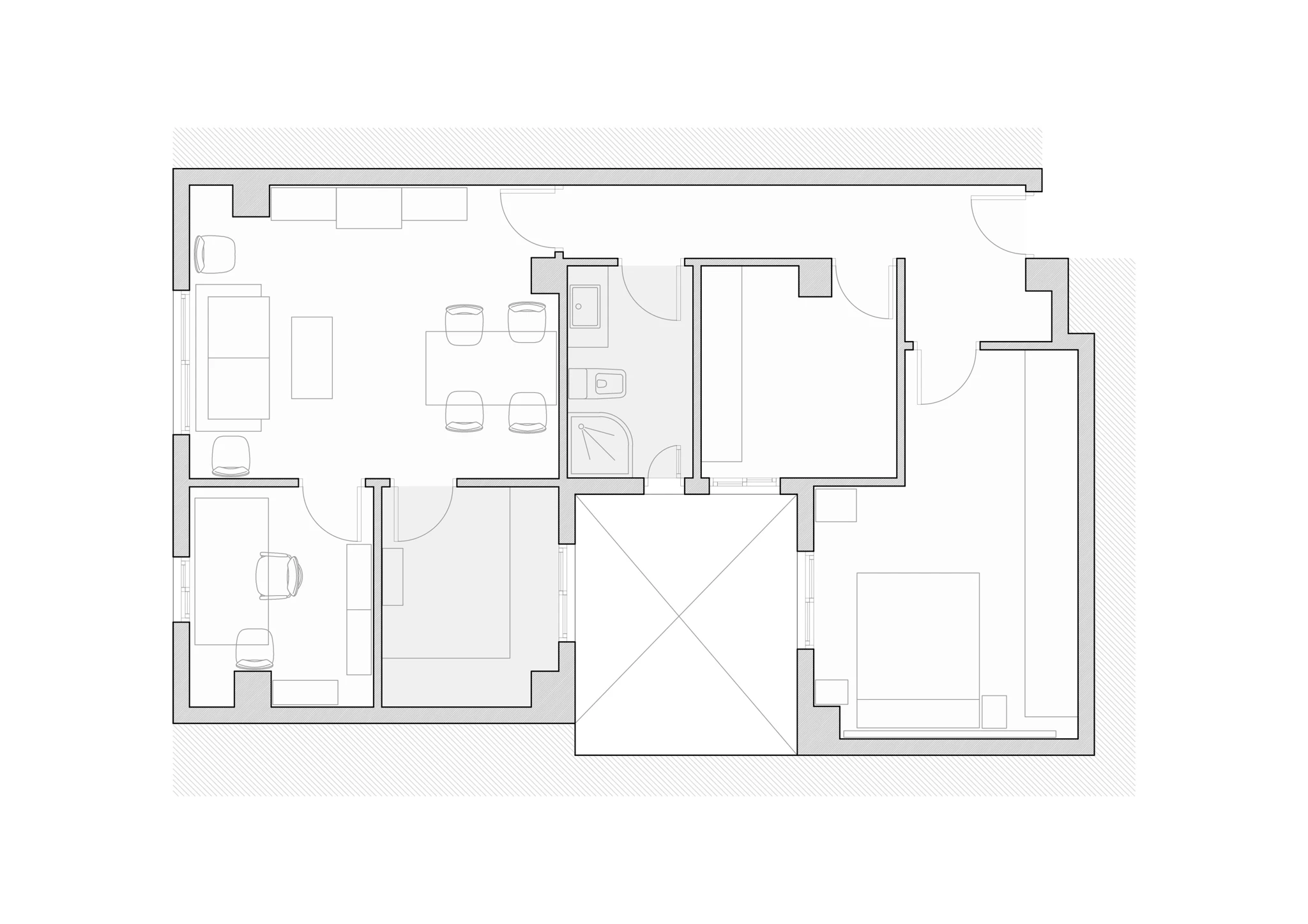 Bookhouse responde a la necesidad del propietario en cuanto a la escasez de espacio para almacenamiento, a través de la creación y ampliación de mobiliario y una nueva distribución interior. Las paredes blancas y el nuevo suelo de madera suponen un marco que encuadra el elemento principal de la casa, los libros, que se agrupan en distintas librerías de forma que de un modo u otro quedan visibles desde cualquier punto de la vivienda, creando un espacio interior doméstico, cálido y cercano.