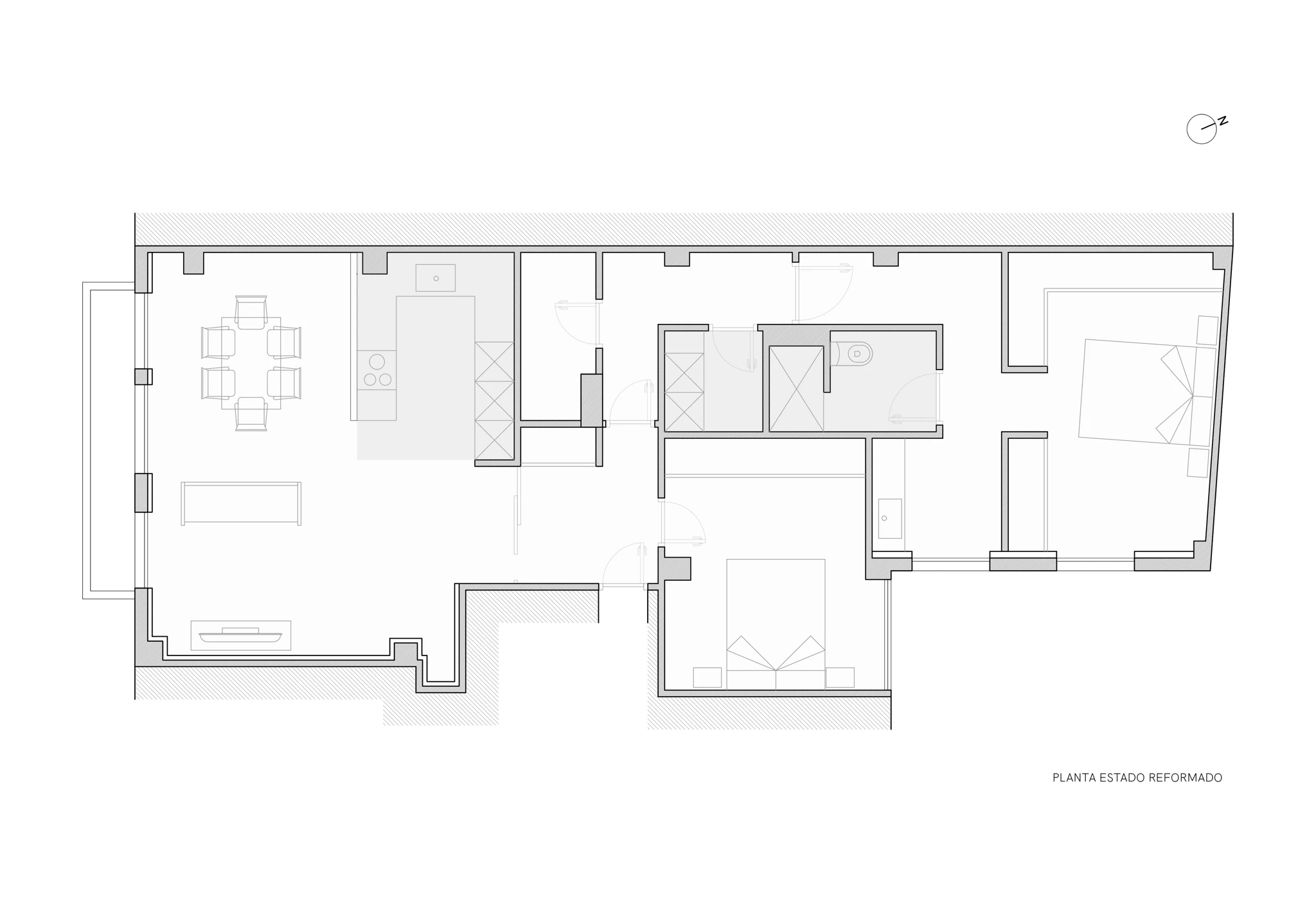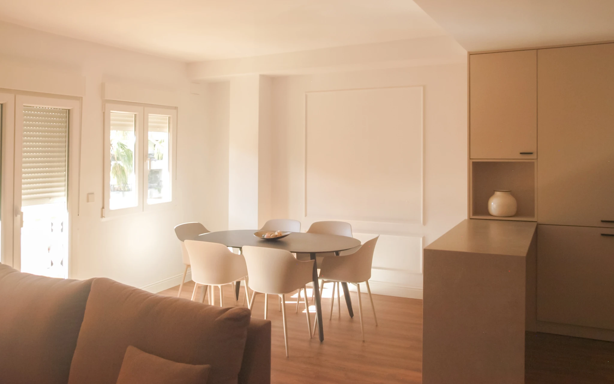 Esta reforma en pleno núcleo urbano de Paterna dota de carácter contemporáneo y ubica en un contexto actual un apartamento de varias décadas de antigüedad. Tomando la adaptación a los nuevos modelos de vivienda como premisa, su distribución se rige por los espacios abiertos y continuos, estructurados mediante conexiones mínimas para así crear un espacio flexible.