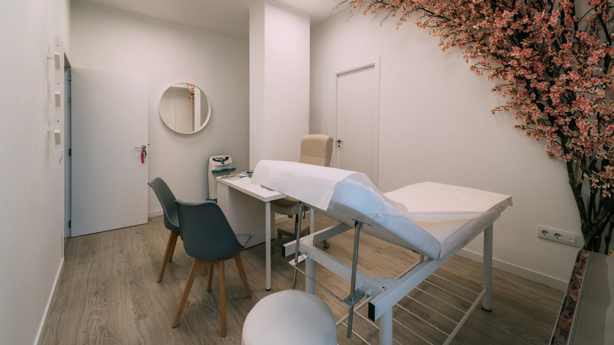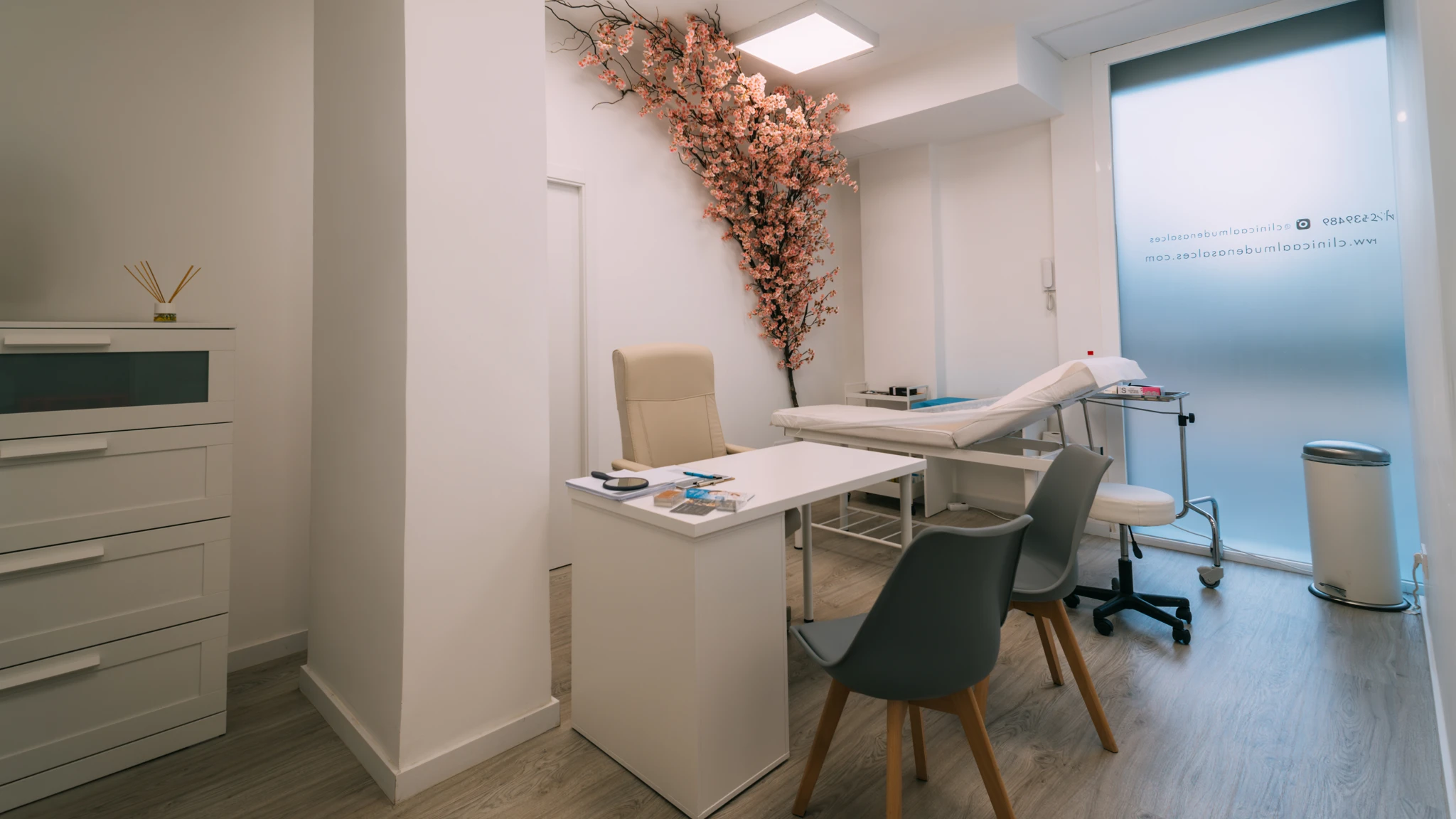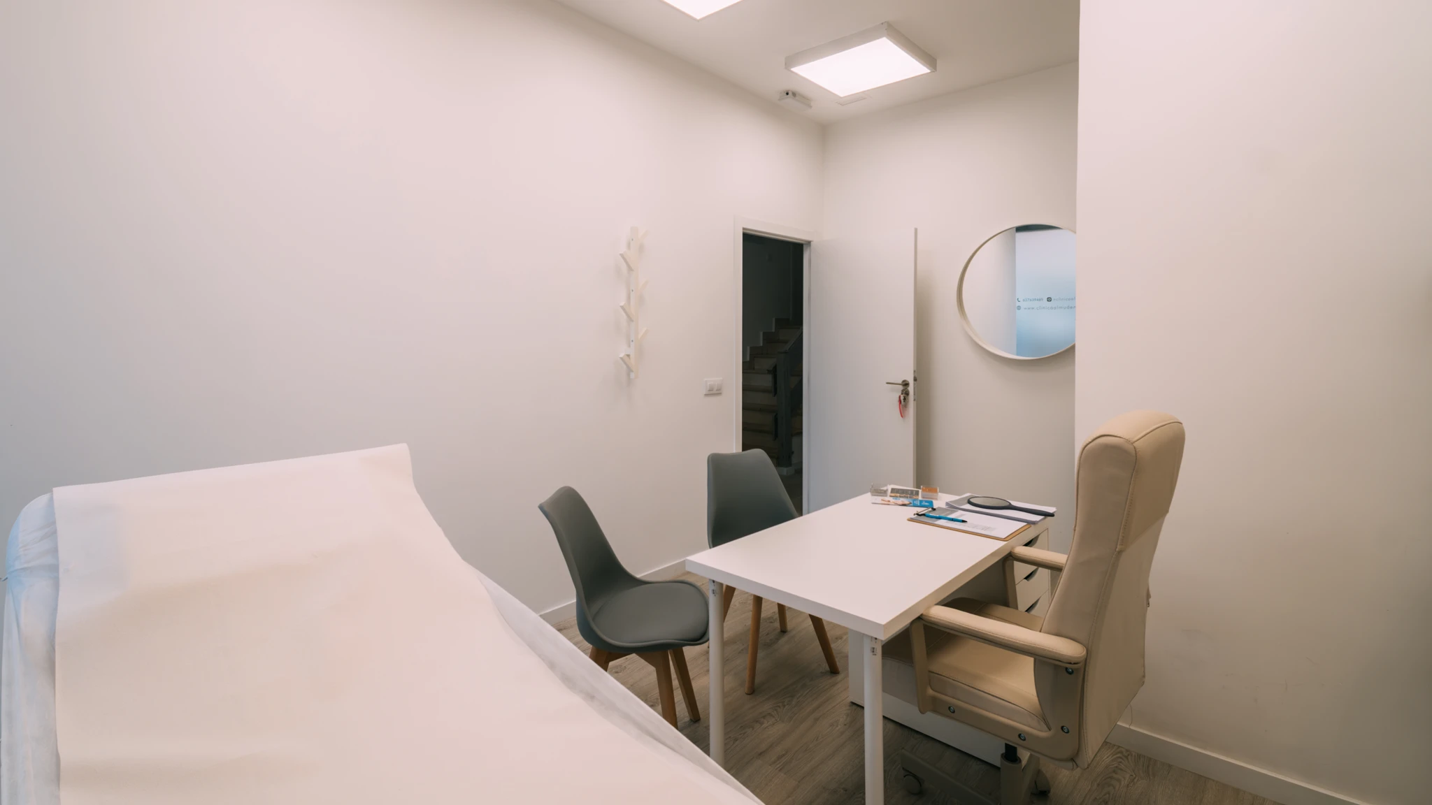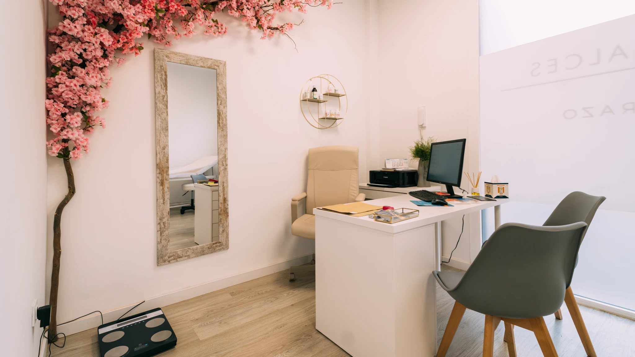 En la renovación de la nueva Clínica Almudena Salces se ha buscado reflejar mediante su estética y funcionalidad la esencia del bienestar y la salud en cada detalle. Esta reforma ha transformado un bajo comercial en una clínica estética vanguardista, donde convergen zonas públicas y privadas en un ambiente profesional y al mismo tiempo acogedor tanto para sus usuarios como para los trabajadores.