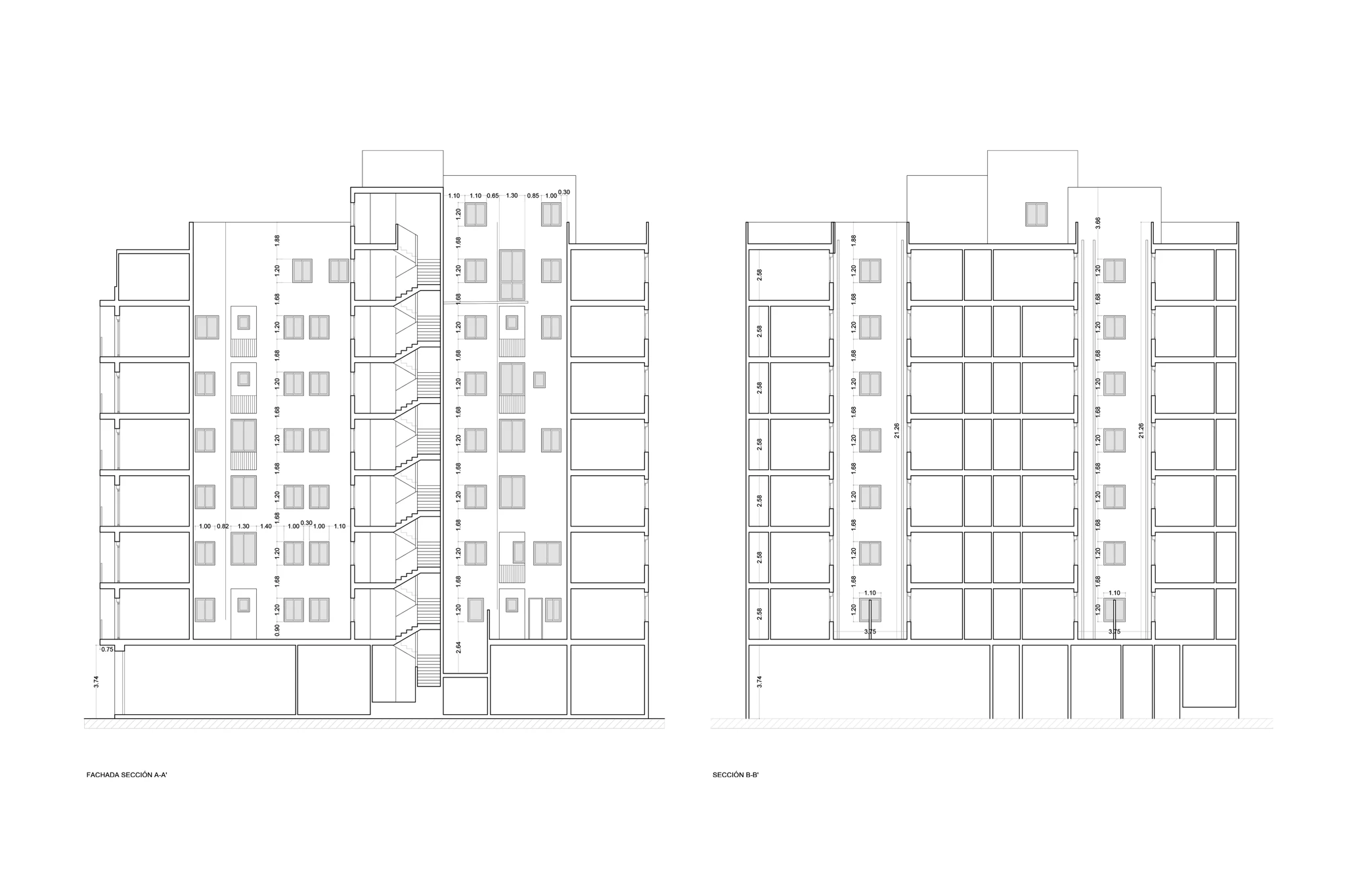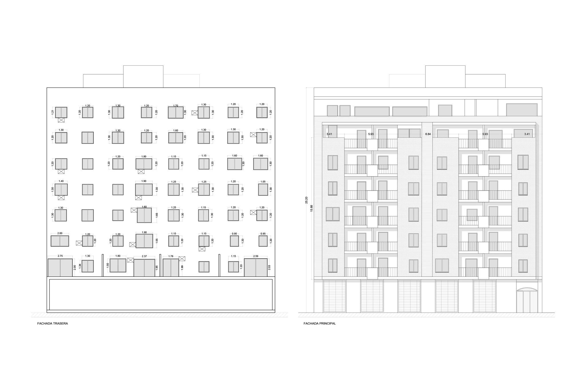 La actuación ha comprendido el saneamiento estructural por aluminosis y posteriormente la rehabilitación energética, con la colocación de sistema de aislamiento térmico por el exterior, la impermeabilización de cubiertas, sustitución de carpinterías y la implantación de placas fotovoltaicas.